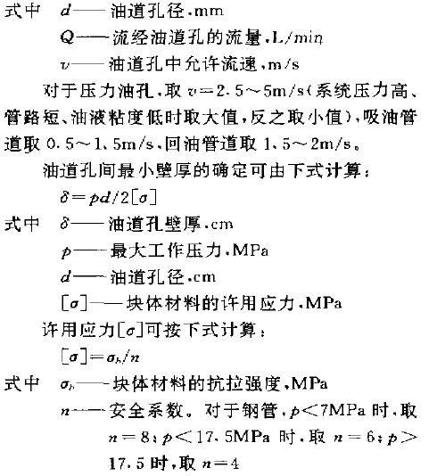 塊體內(nèi)油道孔徑的確定可按下式計(jì)算: